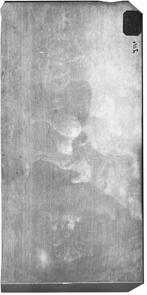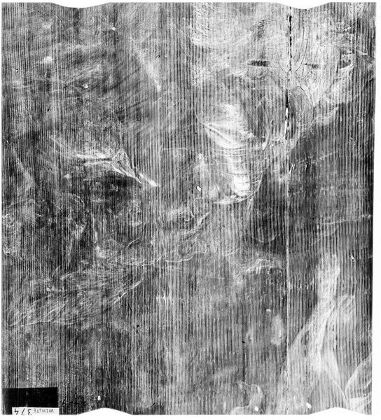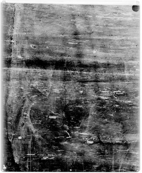 Curator: This is an x-radiograph of "Panel," originally painted by Jan Molenaer. What strikes you first? Editor: The ghostly, almost unsettling glimpse beneath the surface. It makes you wonder what secrets it holds. Curator: Absolutely. X-radiography in art history allows us to see the artist’s process, the underpainting, and any hidden compositions. Editor: Does this reveal anything about Molenaer’s approach? Perhaps his social standing within the Dutch Golden Age art world? Curator: It does. It suggests a confident, iterative method, reflecting the increasing demand for art. Editor: It's like peeling back layers of history and power structures, isn't it? Curator: Precisely, revealing not just the art, but the socio-economic conditions that birthed it. Editor: Gives a fresh perspective. Curator: Indeed, a fascinating blend of art and science revealing hidden stories.
