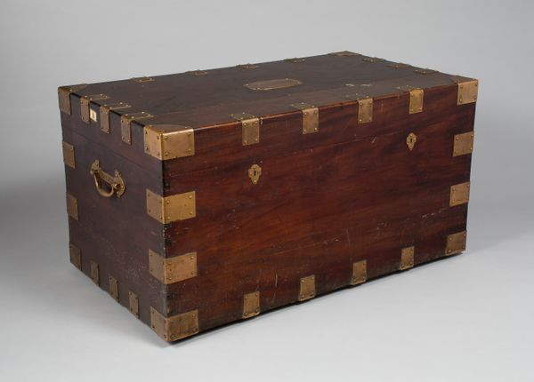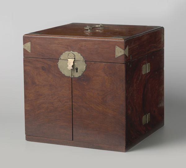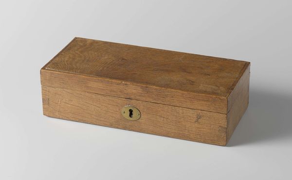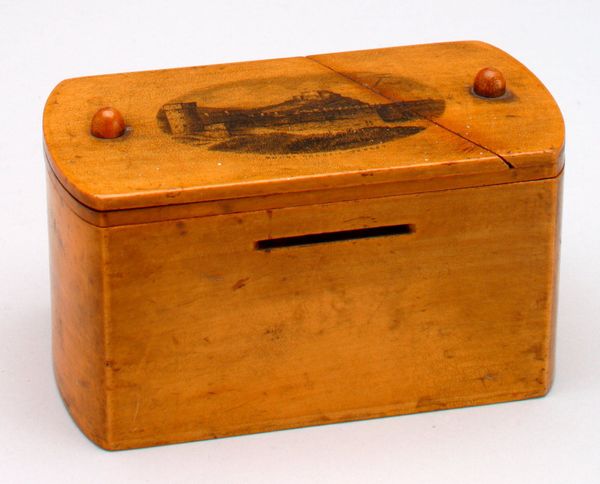 Curator: As you can see before you, this object is known as a "Money box still bank." While we lack specifics about the artist, this piece dates to the 20th century and resides here at the Minneapolis Institute of Art. Editor: It has a modest elegance about it. The polished wood and geometric shapes suggest a sense of thriftiness mixed with aspiration. I mean, putting your pennies in something like this feels a lot more serious than just using any old jar. Curator: Indeed. Consider the function of a money box. It is more than just a container; it embodies cultural attitudes toward saving, investment, and the deferred gratification ingrained within capitalist structures. The use of wood itself evokes a sense of tradition and lasting value. Editor: The box's structure fascinates me – the darker panels bordered by lighter wood, emphasizing form and containment. It recalls early 20th-century design trends, blending functionality with visual appeal and hinting toward Art Deco principles despite its overall simplicity. Did it belong to a child, or perhaps an adult saving for something specific? The scratches and worn edges hint at many stories. Curator: The box transcends mere utility to become an intriguing cultural artifact. What beliefs, practices, or socio-economic conditions influenced the creation and use of this "still bank?" This simple box echoes how personal financial habits intertwine with broader cultural narratives of progress, security, and social standing. It serves as a potent reminder of financial values passed down over time. Editor: Exactly. Looking at this piece today, I am compelled to consider my relationship with money – how it has been shaped by history and visual cues like this handcrafted money box, echoing values across time and generation. Curator: An elegant observation indeed!