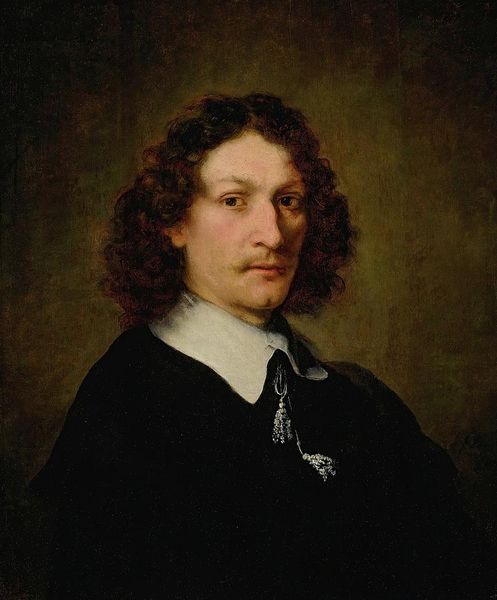 Curator: Here we have a “Portrait of Adriaen Hanneman,” dating from around 1630. The artist behind this oil on canvas is unknown, although the artwork itself currently resides at the Minneapolis Institute of Art. Editor: My immediate response is one of slightly unsettling poise. His gaze, that strong horizontal of his moustache – the overall effect, although meticulously rendered, is quite… distant. Curator: And it's precisely this measured distance that interests me. The hand gesture, while seemingly casual, echoes motifs of self-presentation found in much earlier Renaissance portraits. It serves as a subtle marker of status, but more than that it signals intellectual engagement – almost as if the man embodies a certain humanist ideal. The slightly angled gaze engages us with some level of challenge, though that challenge comes across more like wry amusement than cold assessment. Editor: True. Look how the stark white ruff accentuates his neck, drawing the eye upward. And yet, observe the somber blacks and browns that otherwise envelop him, flattening the picture plane. This feels far more like an exercise in controlling light and form, not an illumination of character. Do you think the almost monochrome palette is intentional? Curator: Undoubtedly. The almost severe constraint throws those key areas, such as the face and hand, into higher relief. Note, too, that the precise and focused highlighting accentuates elements of both power and culture. A detail to observe, particularly in its implied continuity over many periods of Western history, is how Hanneman, through gesture, invokes symbols of introspection that he is obviously at pains to assert. This symbol, of the individual reflecting in a time of transition, has strong resonance. Editor: It's interesting, too, how his hand bisects that stark black expanse. See the dramatic diagonal it creates, disrupting what would otherwise be an oppressively symmetrical composition. The light there also seems deliberately calibrated. Curator: Precisely. That's a potent gesture, almost daring the viewer to find his own reflection. A true masterclass of layered communication, it makes the whole canvas far more than just another period piece. Editor: Agreed. A rather effective construction of identity. It gives food for thought, particularly regarding light, shadow and suggestion.