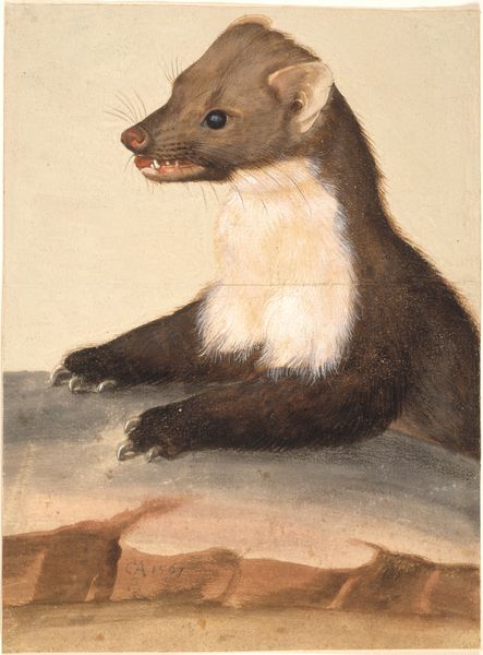 Hans Hoffmann made this watercolor and gouache painting of a squirrel in 1578. The work is made with meticulous attention to detail, capturing the texture of the squirrel's fur and the delicate features of its face. Hoffmann was a master of the "realistic" style, and the squirrel is no exception. It would have required careful observation of the natural world and a high level of technical skill. You can almost feel the softness of the fur and the sharpness of the claws, which speaks to the level of craftsmanship involved. The techniques employed point to a culture that valued both scientific accuracy and aesthetic beauty. In this sense, the painting reflects broader social trends, including an increased interest in natural history. It challenges the traditional hierarchy of art, which often privileged grand historical subjects over more modest depictions of the natural world.