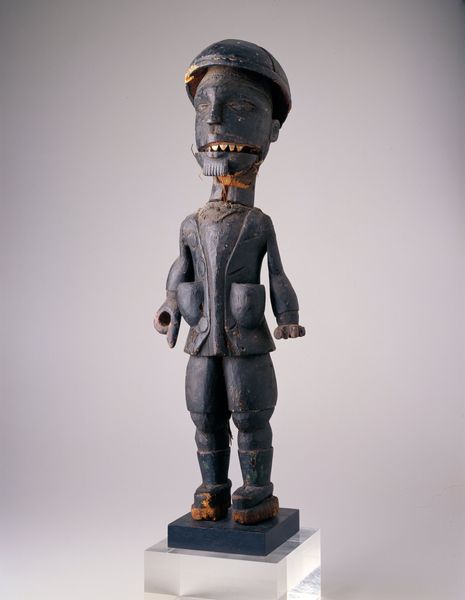 This -Golliwog- still bank was made by John Harper & Company, Ltd, though we don’t know exactly when. Its dark palette and metallic surface have the feel of aged iron or tarnished bronze. It reminds me of the way that the sculptor Nancy Grossman would work, building up layers of material to create a sense of texture and depth. Look closely at the way the red paint is applied around the coat buttons and down the legs. The painterly gestures suggest a kind of violence, like the Golliwog is bleeding or bruised. It's a jarring effect, given the overtly cartoonish imagery and the seemingly innocent function of a money bank. This makes me think about how seemingly simple objects are capable of carrying complex and troubling histories. The figure reminds me of the work of artists like Kara Walker, who confront difficult subjects with a mixture of humor and provocation. Ultimately, this piece invites us to think about the relationship between commerce, culture, and the representation of race.
