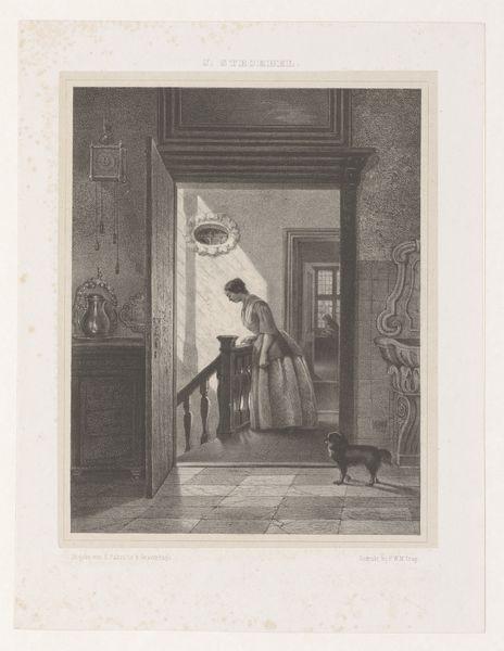 Curator: This print, dating from 1838-1899, is entitled "Peinzende kunstenaar in zijn atelier"—"The Thinking Artist in his Studio." It's attributed to N. Dietz. Editor: My first thought is…melancholy. The artist's posture, the dimly lit studio, and the presence of armor—it all evokes a sense of pondering both the past and present conditions. Curator: Precisely. The image offers a fascinating glimpse into the romanticized view of the artist's existence in the 19th century. Here, the studio isn’t just a workspace, but a carefully curated space projecting an image of intellectual depth. Notice how the armor hints at a connection between artistic endeavor and notions of heroic pursuit. Editor: Absolutely. And look at the engraving itself. It's a steel engraving, judging by the precision. Consider the labor involved in creating those fine lines, translating an artist’s moment of creative block into a mass-produced image for wider consumption. It completely changes the reception of the original idea. Curator: It speaks volumes about the evolving art market, indeed! Engravings like this helped popularize genre painting and portraiture and their styles, making art accessible to the expanding middle class. Also it democratizes images by challenging unique or original "aura" to reproducible images, raising questions around copies. Editor: Thinking about process again, what paper was used? Was it handmade, what about the inks, and who did produce the print itself. Knowing details on production may help understand which consumer was this print directed at. The level of detail indicates high skills as a maker. It’s intriguing to think about the artisan translating one media to another media and another style for distribution. Curator: Those details really give this context and richness! The rise of art journals at the time played a significant role in shaping artistic taste, further enhancing the importance of reproductions. Dietz’s print existed within that network. Editor: This brings another thought... Was this commissioned, reproduced on its own, sold by Dietz as individual engravings? So many social and economic contexts at play in what seems like a simple scene. Thank you, I am never going to see these types of images the same. Curator: Well said! Understanding how artworks circulate within broader social and cultural contexts unlocks deeper meaning for sure.