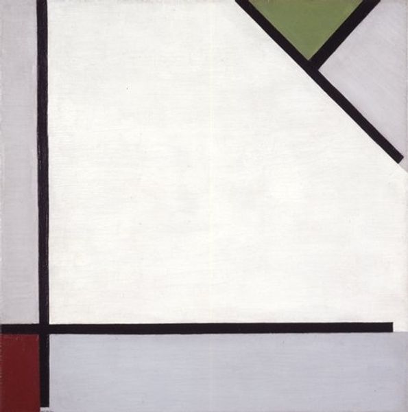 Piet Mondrian made this painting, Composition C, with oil paint on canvas. Now, that might sound straightforward, but think for a moment about these materials. Oil paint is a mass-produced industrial product. Canvas, too, comes off a roll. This wasn't always the case; both had to be painstakingly prepared by hand, and still are by some artists. Mondrian’s choice to embrace these standardized materials says something. The black lines are clearly delineated, creating a grid that seems almost mechanically precise. The colors are also flat and uniform, as if carefully manufactured. Look closely, and you can see the brushwork. The colors are slightly uneven, hand-laid, and betray the amount of labor involved. The impact of this work comes from a tension between the seeming perfection of industrial production, and the human touch. It’s a celebration of both, and a reminder that even the most abstract art is rooted in material reality.