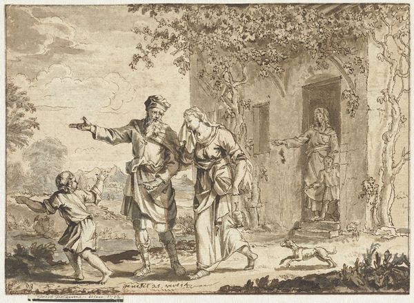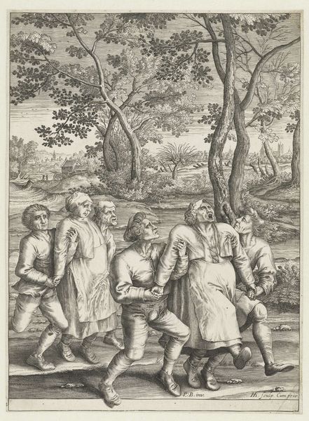 Editor: This is "Seven Boys," a print and drawing by Wenceslaus Hollar, dating back to somewhere between 1646 and 1654. I'm really struck by how much detail Hollar packed into a relatively small engraving. It seems so playful and busy. What do you see in this piece? Curator: For me, the key is the process of production. Consider the labor involved in creating such intricate details using engraving techniques. We are meant to explore how prints, often seen as reproducible and lesser, actually involve immense skill and time. This engraving also invites us to think about the material realities of childhood in the Baroque period, where cherubic figures often mask real societal structures. Do you notice anything about their activity? Editor: I do, they seem to be making music or reveling, celebrating maybe? Is there something about that imagery that ties in to Baroque notions of class and labor? Curator: Exactly! Look closely – are these children at work or play? What is being consumed here, labor or grapes? Are these boys performing innocence, which is in turn consumed by a patron of the artwork, for the purpose of their self-display? This tension between innocence and implied servitude is key to the period’s economic systems and power structures. It’s important to question how representations like these circulated and who had access to them, which informs our own access now, through mass digitization in places like The Met. Editor: That is fascinating! I hadn't considered that what I viewed as just "play" had this embedded in its construction and reception! Thanks so much. Curator: It just demonstrates that what we sometimes overlook are how things are made, who makes them and under what conditions of access! It helps give a broader perspective.