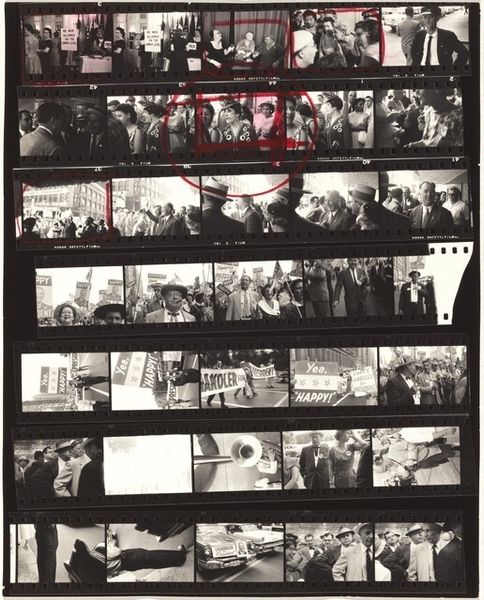 This is ‘Nixon campaign 16’ by Robert Frank, a photographic contact sheet. It’s full of little moments that might otherwise get lost. The real magic here is in seeing all the frames together. Each one is like a note in a song, and together they tell a story, but it's not a straightforward one. You have to piece it together, and that's where the fun begins. What really grabs me is how Frank isn't afraid to show us the process. This isn't a slick, polished image, but a raw and intimate look at his way of seeing the world. It reminds me a bit of Walker Evans, in the sense of finding beauty and meaning in the everyday, the overlooked. It’s about embracing the imperfect, the messy, the ambiguous. And that, to me, is what art is all about.