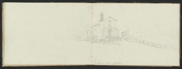 This is Abraham Teerlink's "Facade of a Church in Sutri," a pencil drawing now held in the Rijksmuseum. The sketch presents a church facade with close attention to its architectural details, using subtle gradations in pencil to suggest depth and shadow. The composition is meticulously structured, emphasizing symmetry and balance, characteristic of classical architectural renderings. Teerlink’s approach highlights the facade’s geometry and the interplay of light and shadow across its surface. This meticulous representation transcends mere documentation; it's an exploration of form and structure, resonating with the era's fascination with rational design and classical ideals. Consider how the artist uses line and perspective to capture the building’s essence, inviting us to contemplate the enduring appeal of architectural form as both a cultural symbol and an aesthetic object. The drawing becomes a study in how simple lines can convey complex spatial relationships and convey a sense of monumental presence on paper.