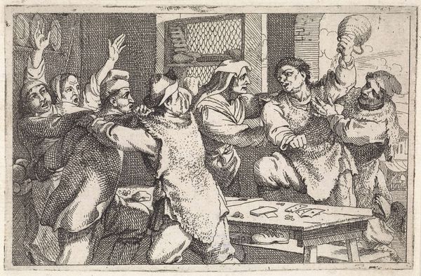 Pieter Nolpe’s etching, “Fighting Peasants,” captures the visceral energy of a brawl. Made in the Netherlands, likely in the mid-17th century, this image speaks volumes about the social dynamics of its time. The scene is chaotic, with figures wielding crude weapons, a stark contrast to the refined world of the urban elite. In the Dutch Golden Age, prints like this served as a form of social commentary, often playing on stereotypes of rural life as coarse and unruly. The etching points to the complex relationship between city and countryside, where the latter was seen as both a source of sustenance and a site of disorder. To truly understand this image, one must delve into the history of Dutch printmaking and its role in shaping public opinion. What was the function of these prints? Were they consumed in private homes, or displayed in public? The archives of the Rijksmuseum hold clues to these questions, offering a glimpse into the social life of images.