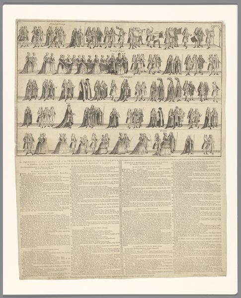 This late nineteenth-century broadside by Antonio Bosch captures the cycle of Carnival through forty-eight vignettes. The title, "Triumphant Entry and Burial of the New Carnival," points to the festival’s core drama: a period of joyous excess followed by a symbolic death and rebirth. The recurring motif of the procession dominates, echoing ancient Roman triumphs, but with a twist. Here, the figures are not emperors or generals but common folk reveling in temporary freedom from social norms. This inversion reminds us of the Roman Saturnalia, where slaves and masters switched roles, a cathartic release of societal pressures. Observe, too, the figure of death appearing towards the end of the parade, riding through the streets. It echoes the medieval “Danse Macabre,” a stark reminder of mortality amidst life’s pleasures, a dance of death where all are equal. This symbol, deeply rooted in our collective subconscious, surfaces again and again, reminding us that the end awaits even in the most joyful of celebrations. The broadside engages us on a deep, psychological level, tapping into our primal fears and desires.