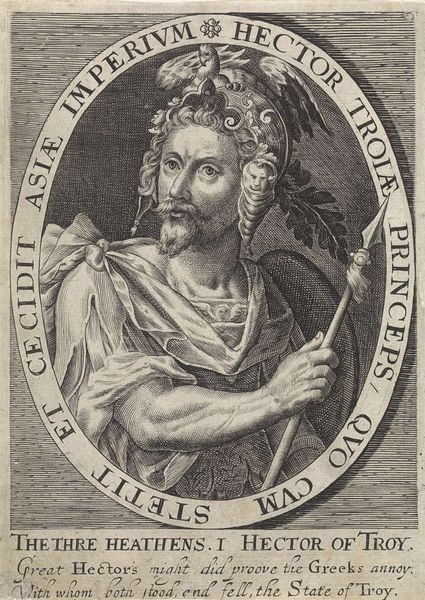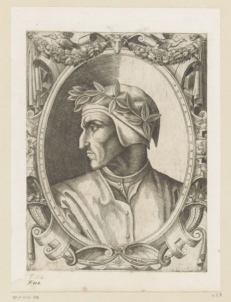 Curator: What a stark, arresting image. Editor: Yes, a wave of sadness just hit me. The man's weary expression cuts right through, despite the artifice of the style. Curator: We are looking at "Ecce Homo," a print of unknown date by Johann Michael Püchler. The image, made with engraving on paper, depicts Christ crowned with thorns. Editor: That title, “Ecce Homo,” "Behold the Man" Pontius Pilate's declaration as he presented a scourged Jesus to a hostile crowd... It implicates the viewer. Are *we* the crowd, complicit in his suffering? Curator: Indeed. The suffering of Christ is meant to evoke not just empathy, but also recognition of the universal human condition. What symbols do you observe? The crown of thorns, naturally, refers to His Passion. And the surrounding text, forming a halo, reinforces a similar theme. Editor: But the *entire* image is made up of tiny text. This isn't just ornamentation; it is integral. I’m finding it almost unbearable to meet his gaze. Are we supposed to be able to literally *read* the words that form his image? What effect does that produce? Curator: That's an excellent point. The words *do* matter. Notice also how the artist meticulously crafted every curve, every shadow. Each droplet of blood. Such artistic control echoes an effort to guide, or even dictate, our interpretation. It also evokes specific traditional representational practices tied to cultural expectations and values during the late Renaissance, in Europe. Editor: Right, to what extent does it encourage genuine pathos versus enforcing prescribed religious feeling, a sense of guilt and piety directed by religious doctrine. Curator: That tension is what gives this image its lasting power. The skill employed to forge this type of "devotional image" for viewers to emulate may provoke diverse responses within a contemporary public audience. Editor: Absolutely. Thinking about the conditions surrounding its creation illuminates some difficult truths. I feel its power more keenly, now. Curator: For me, the emotional power still resonates across centuries. It reveals enduring symbolic meaning, reminding us of the psychological depth inherent in religious iconography.