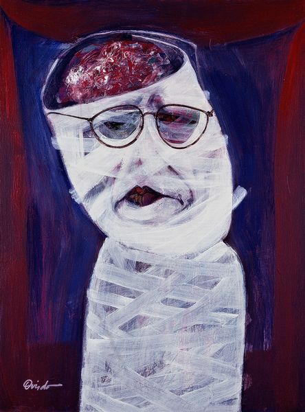 Curator: This photograph, titled "Untitled #413," was created by Cindy Sherman in 2003. Like much of Sherman's work, it's a c-print, exploring the artifice of representation and identity. Editor: It's unsettling, immediately. The sad clown makeup, the lurid background—it feels like a funhouse mirror reflecting something quite dark. Curator: Absolutely. The clown is a potent figure, often masking deeper societal anxieties and personal struggles. Consider the historical context; this was created in a post-9/11 world, perhaps mirroring widespread feelings of uncertainty and unease. Editor: The clown's sagging features amplify that sense of unease. The drooping mouth, the way the white makeup emphasizes the wrinkles around the eyes…there's a fragility, even a resignation, in those lines. What does the clown mean for society? Curator: The work clearly builds upon her earlier "Untitled Film Stills," but rather than referencing specific cinematic tropes, this series delves into more overtly theatrical characters. Here, she plays on the stock character of the sad clown. Editor: The jacket embroidered with "Cindy" personalizes it, adding another layer. Is this Sherman confronting her own identity, her public persona? There is always an autobiographical element, a sense of personal vulnerability. Curator: It complicates the reading. Sherman's choice of photography and portraiture isn’t coincidental; this decision highlights how institutions like museums and art history have controlled the means by which images have historically been framed, presented, and distributed to the public, making this kind of subversion particularly effective. Editor: Yes. I also see the use of makeup as the idea of wearing masks, whether in art, as we see, or on the face, what’s being hidden. In psychological terms, the sad clown can embody the painful division between our inner world and our public performance. Curator: Sherman is prompting us to question the roles we play, both in life and as viewers of art. Editor: The layering of masks, of identity, is almost dizzying to follow, but what she's saying—it has resonance. Curator: Indeed. Sherman uses herself to prompt bigger questions about our world and what we deem valuable within it.