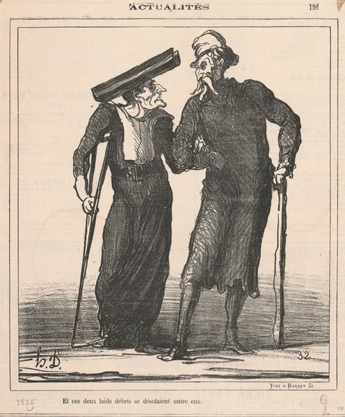 This lithograph by Honoré Daumier depicts a soldier and a pope, embodying themes of war, religion, and social commentary. Note the exaggerated features of both figures. The soldier is gaunt, the pope is pontificating, and the cartoonish elements speak to a deeper psychological tension. These caricatures connect to a tradition of visual satire found across cultures, from ancient Roman theater masks to the grotesque figures in medieval gargoyles. These distorted forms act as cultural mirrors, reflecting anxieties and critiques of power. The pope's long beard echoes images of prophets and patriarchs. His gesture conveys authority, yet there's a hint of unease in his expression, a dissonance that taps into the viewer's subconscious associations with religious authority. The exchange between the two men reflects societal struggles, hinting at the non-linear, cyclical progression of power dynamics throughout history.