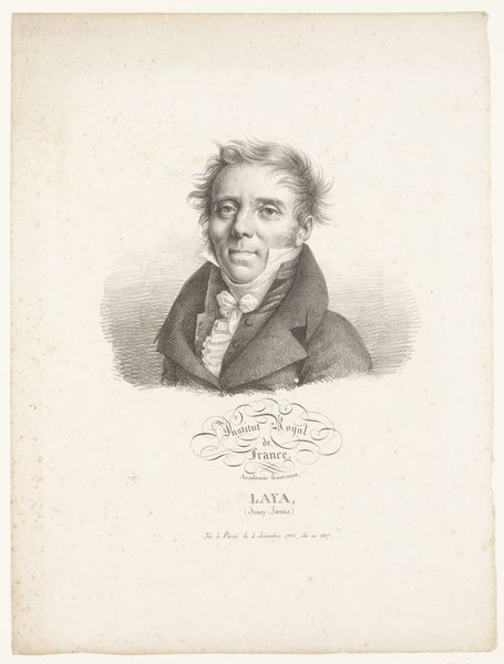 Curator: We're now looking at a piece titled "Portret van de toneelschrijver Victor-Joseph Étienne de Jouy" by Julien-Léopold Boilly, created around 1820. It's rendered using engraving, pencil and other graphic-art techniques. Editor: It’s a striking image. I'm immediately drawn to the texture created by the pencil hatching and the very apparent materiality of the print itself. You can almost feel the grain of the paper. Curator: Indeed. The academic-art style is evident in the meticulous rendering of form. Notice how Boilly employs line and shadow to articulate Jouy's features. There’s a classical restraint, despite the potential for detail offered by the medium. Editor: I’m interested in how the printmaking process would have impacted the final product. Consider the engraver’s skill, translating the artist's intention through precise labor, etching the plate that is eventually used to mass produce the image and give it social currency. Curator: Absolutely. But consider also the portrait’s composition: the deliberate choice to depict Jouy with a subtle sense of gravitas. The formal elements suggest a calculated effort to convey his intellectual and societal standing. Observe how the swirling text mimics the sitter's unruly hair, juxtaposing text with a corporeal figure. Editor: Right, yet, the layering of the image production adds complexity. Was this designed as a personal portrait, or to make Jouy a popular figure in France by way of this engraving? This brings questions of accessibility, labor, and perhaps propaganda, as Jouy seems idealized through the skilled hand of the artist and the printmaker's means. Curator: And let's acknowledge how the black and white tonality underscores the neo-classical aesthetics. It recalls the clean lines and forms characteristic of the era. This visual austerity becomes integral to how we understand Jouy within that historical moment. Editor: A print like this makes one consider the materials required, the social hierarchies embedded in printmaking studios, and how images like these participated in disseminating culture at a rapid rate. I'm struck by how much labor and material went into a seemingly simple portrait. Curator: Considering the intricate use of light and shadow and classical form, it does reveal the hand of the artist and their meticulous control. Editor: And considering the implications of mass production in graphic art, one realizes that even an image rendered in a classical mode involves questions of materials, labor, and, ultimately, social and economic circulation.