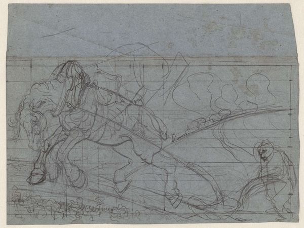 Editor: This is a pencil sketch by John Flaxman, simply titled "[title not known]" housed at the Tate. It looks like studies of figures wrestling, or perhaps embracing? They are kind of floating on the page. What do you see in this piece? Curator: I feel the dynamism, don’t you? The flurry of lines capturing a fleeting moment of struggle, or perhaps you’re right, Editor, even tenderness. Flaxman was deeply inspired by classical forms; do these figures echo the epic battles of gods and heroes, or perhaps a more intimate, human drama? The ambiguity is part of its charm, I think. Editor: That is beautiful: "a fleeting moment of struggle, or even tenderness." I love that it could be both! Curator: Yes, it's a dance, isn't it? Art is a dance, always. And we get to interpret the steps.