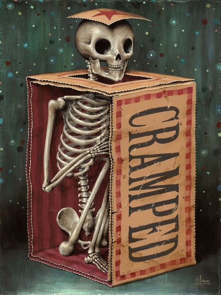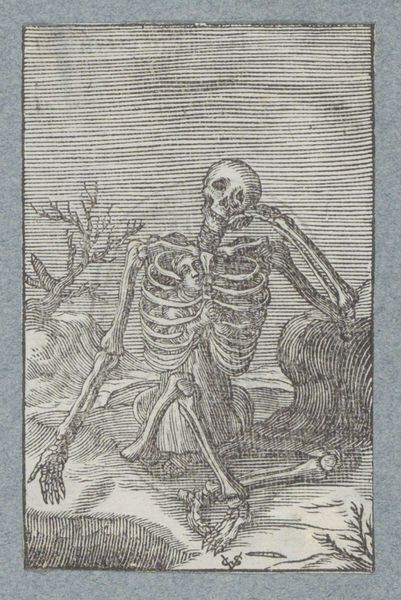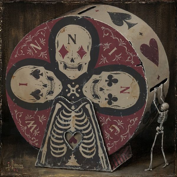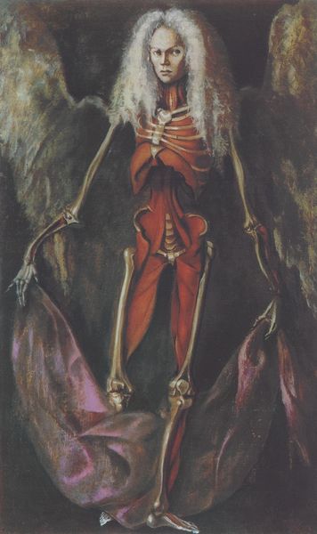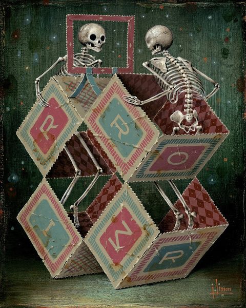 Editor: Jason Limon's "Push," created in 2019, presents a curious tableau. The use of skeletons, against a banner of sorts, strikes me as simultaneously whimsical and morbid. There's this inherent tension, almost like a carnival of the macabre. What do you make of this peculiar piece? Curator: It does possess a peculiar charm, doesn't it? Limon has a knack for juxtaposing the playful with the profound. The skeletons, classic symbols of mortality, are presented here in almost a cartoonish manner, stripped of their inherent dread. Notice how the banner, with the word "Push," becomes this liminal space – almost a doorway – between states of being. Editor: A doorway between states... Interesting! I hadn't considered it that way. But why "Push?" What do you think he’s pushing us toward – or away from? Curator: Ah, that's the question, isn't it? Perhaps Limon is playfully nudging us to confront our own anxieties about mortality, to "push" past the fear and find some amusement in the absurdity of it all. Or perhaps it's a "push" towards acceptance. I feel the overall experience is about challenging perceptions. Don't you find a humorous element in its juxtaposition of seemingly contradictory imagery? Editor: Absolutely. It’s definitely thought-provoking, making you ponder the boundaries we create around life and death. It makes mortality seem almost… approachable? Curator: Exactly! It's as if Limon's saying, "Hey, it's okay to laugh in the face of the inevitable." Art that reminds us not to take everything so seriously. Did you notice the lighting bolts near the central figure? Editor: I did! It's amazing to look at each element now and observe the complete change to our original understanding of "death and skeletons", because I see what you mean! Thank you for sharing! Curator: My pleasure. Sometimes, all it takes is a little "push" to see things from a new perspective.