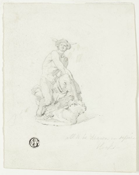 Martinus Rørbye made this drawing with graphite on paper. It depicts a woman, presumably from Egina or Megara, washing clothes. The material simplicity of graphite on paper is crucial here. The directness of the pencil line creates a sense of immediacy, as if we are witnessing a scene captured in a fleeting moment. Rørbye's choice emphasizes the everyday nature of the subject. We see the labor involved in maintaining cleanliness and order. The drawing is not about idealized beauty. It's about the quiet dignity of ordinary work. The use of a readily available material like graphite connects this artwork to broader social contexts. It speaks to the accessibility of art-making, and highlights the intersection of craft, design, and materiality in our understanding of visual culture.