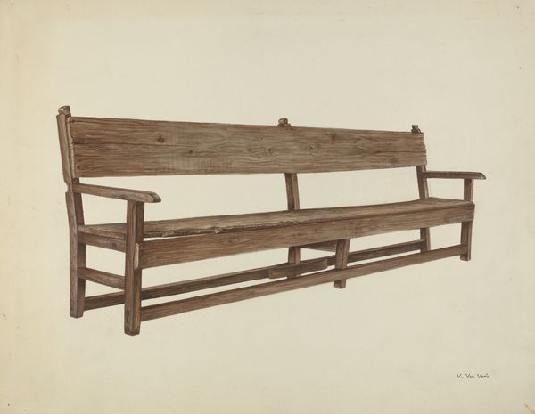 Grace Dwyer made this drawing of a three-quarter bed, and while the date is unknown, she lived from 1855 to 1995. Consider the material presence of the bed: its oak frame, carefully joined, and the interwoven metal springs supporting the mattress. Wood is a familiar material, but here, its inherent qualities of texture, weight, and form are highlighted, showcasing the joiner’s skill. The bed's design suggests a move away from mass-produced furniture, towards handcrafted, durable pieces. The three-quarter size also hints at social shifts, reflecting changing household sizes and living spaces. Details like the decorative cut-outs in the headboard reveal an attention to design, elevating the bed beyond mere functionality. Looking at this drawing, think about the labor involved in crafting such a bed. The choice of materials, the construction techniques, and the evident care in execution, all contribute to its value. This drawing challenges our assumptions about craft and fine art, inviting us to appreciate the skill and cultural significance embedded in everyday objects.