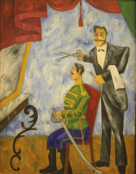 William Balthazar Rose's painting, "Nights of Indolence," uses the traditional medium of oil paint to create a composition that invites us to consider the artist's creative process. Rose uses the medium to blend a range of different painting techniques, combining realism and abstraction, such as in his depiction of figures in the foreground, painted with precision and anatomical detail, and those in the background, in the form of crude brushstrokes. Oil paint also allows Rose to capture a range of textures, from the smooth skin of the figures to the rough surface of the stage. The amount of work that has gone into this piece is reflected in the artist’s layering of brushstrokes, which add depth and complexity to the figures. The dream-like quality of this painting is emphasized by the contrast of the figures' poses and their mysterious gaze, prompting reflection on the amount of labor, politics, and consumption involved in creating an artwork like this. It invites us to consider the social context from which Rose draws inspiration, and the traditional distinctions between fine art and craft.