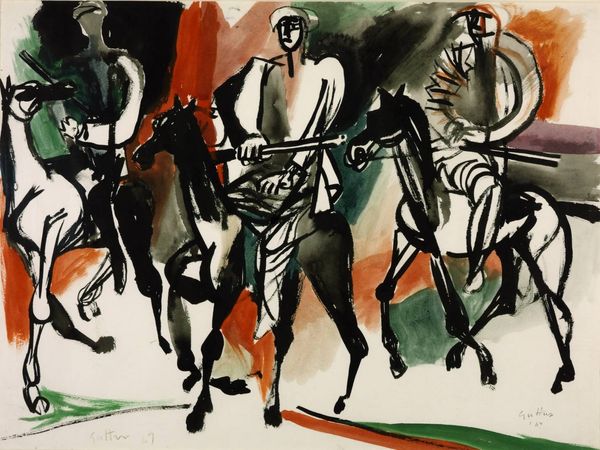 Bruno Cassinari made this piece, "La Nobiltà Dei Cavalli," with an open, process-led approach. I can see how the painting's layers reveal a dance between intention and chance. The colours are washed out reds and greens, they build a ground for the frantic linear energy of the horses and hands. You can almost feel the physicality of Cassinari’s engagement with the medium. Look closely and you can see the textures, the way the pigment settles into the weave of the canvas. The black outlines give solidity to what is an otherwise fleeting depiction of a horse in motion, and the odd disembodied hands. It reminds me a bit of Franz Marc's animal paintings, both share a way of seeing that embraces the subjective and the emotional. We can see art as a dialogue across time, a conversation between artists riffing on ideas, each adding their own experiences and perspectives. Ultimately, art is about possibilities, about embracing the multitude of meanings that a single work can hold.