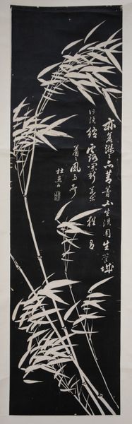 Editor: Here we have Kuang Xü’s "Bamboo," created around 1922. It's an ink drawing, a woodblock print currently residing in the Metropolitan Museum. It's quite striking, almost like a photographic negative. What stands out to you most when you look at this piece? Curator: The high contrast immediately grabs attention. It makes me think about the political and social tensions of the time. We are talking about the period just after the collapse of the Qing dynasty; a time when many Chinese artists grappled with tradition and modernity. Kuang Xü chooses bamboo, a classical subject, but renders it in such a stark, modern way. Do you think that tension comes through? Editor: I can see that. The sharp lines feel very deliberate, not organic at all. Was bamboo a common theme at the time? Curator: Indeed. Bamboo often symbolizes resilience, integrity, and flexibility in the face of adversity. Given the political turmoil in China during the early 20th century, representing bamboo served as a subtle commentary. How do you interpret its specific meaning in this context, given what you now know about the political climate? Editor: That’s really interesting! Considering what the bamboo symbolizes and the timing, perhaps Kuang Xü aimed to represent the hope that his country, like bamboo, could bend without breaking and stay resilient. Curator: Precisely. Also notice the text accompanying the image. That's equally important; it acts as both part of the visual composition and contains social and political meanings. So how do you see the work now, having considered both the visual and contextual elements? Editor: I see how art isn't just about aesthetic appeal, but a reflection of historical anxieties and the hopes for the future! Curator: Absolutely. And exploring those connections helps us appreciate its complexities even more deeply.