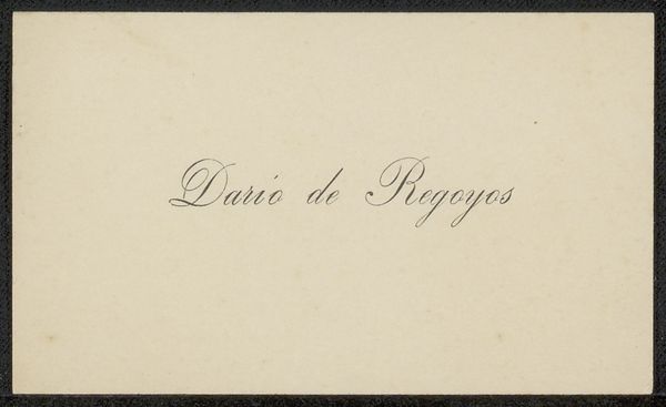 Editor: So, we have here a visiting card addressed to Philip Zilcken, made sometime between 1861 and 1925 by Léon Victor Auguste Bourgeois. It's a print, presumably on paper, with some lovely typography. It seems so simple, yet elegant. What jumps out at you when you see this? Curator: The simplicity itself is quite compelling, isn't it? Think about the social context for this small object. It’s a calling card; an instrument of social exchange. What material practices had to be in place to make a small printed card like this circulate through society? Editor: Material practices? You mean like, printing presses and paper mills? Curator: Exactly! Consider the labour involved. Someone designed the typeface, someone engraved the printing plate, someone else operated the press, and then think about the systems that got it delivered. It suggests a network of making and exchange, each a process and transaction contributing to the social life of the time. Editor: So, you're saying this little card isn't just a greeting, but a snapshot of the era's industrial capacity and labor structures? Curator: Precisely. The elegance you mention is born of those material conditions. The rise of a middle class eager to participate in social circles made this almost a commodity. Editor: It's amazing to think about all the industry tied up in such a small piece of paper. Curator: Absolutely, and how that industrial structure in turn defined social behavior. Editor: I will definitely never look at business cards the same way. Thank you!