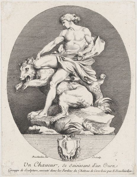 Etienne Delaune created this print, titled ‘Asia,’ using engraving, a process that demands precision and control. A design is incised into a metal plate, typically copper, and then ink is applied to the grooves. The surface is wiped clean, and the image is transferred to paper under high pressure. Consider the sharp, delicate lines that define the figure and animals. The engraver’s skill is evident in the textures he creates. The contrast between light and shadow gives depth to the scene, almost as if we could reach out and touch the lion's mane or the camel's shaggy coat. This image isn't just a representation, it is an artifact of skilled labor. The medium of printmaking allowed images like this to circulate widely, fueling European fantasies about the world beyond their borders. This reflects both the beauty of craft and the complexities of commerce and cultural exchange in the 16th century.