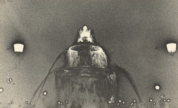 Editor: This photograph, "Love Has Become Death" by Clarence John Laughlin, presents a very eerie scene. A veiled figure hovers over a tombstone. What social commentaries do you see in this work? Curator: The title itself provides a stark critique. Laughlin often used surreal imagery to explore societal anxieties. How does the setting, likely a cemetery, contribute to the message about the cultural ideas of love and loss? Editor: It makes the statement that love is dead; it's a funereal photograph, I suppose. I wonder if that's a little pessimistic, though. Curator: Perhaps, but Laughlin challenged viewers to confront uncomfortable truths about societal values, particularly regarding love, loss, and the public performance of grief. It is really making you think. Editor: Right. It certainly leaves you with a lot to consider.