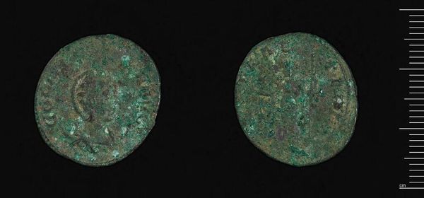 Curator: This is an Antoninianus of Claudius II Gothicus, currently residing at the Harvard Art Museums. The weight is around 2.53 grams. Editor: There’s something haunting about this small coin—the patinated surface, worn smooth by time, hints at the countless hands it has passed through. Curator: Indeed. Coins such as this were not merely currency; they were tools of imperial propaganda. The imagery and inscriptions were carefully crafted to convey power and legitimacy. Editor: I wonder about the experience of the marginalized under his reign. How might someone excluded from its promise of prosperity view this object? Did it hold the same symbolic weight? Curator: An important question. The public role of these coins extended to solidifying the emperor’s image, yet their impact varied vastly depending on social status and geographic location. Editor: It’s a stark reminder that even the smallest artifact can be a potent symbol of power and its uneven distribution. Curator: Precisely. Reflecting on this coin invites us to reconsider the narratives of value, influence, and marginalization throughout history.