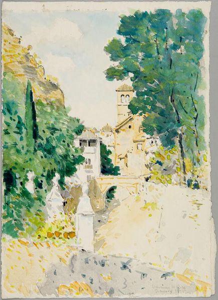 Editor: We’re looking at Édouard Vuillard's *Le Chemin Devant La Maison,* seemingly an oil painting, undated. It gives off a hazy, dreamlike impression. What are your thoughts about Vuillard's intentions with the materiality and construction of this piece? Curator: What immediately grabs my attention is Vuillard’s use of oil paint – applied so thinly in areas it almost feels like watercolour, and then layered in thicker, almost impasto-like, passages. This play with material process complicates a simple reading of "landscape". The materiality itself is the subject here. How does this inform our understanding of “intimism,” often associated with Vuillard? Editor: I see what you mean. The looseness disrupts the straightforward representation of nature. Do you think the way he handles the oil paint – that spectrum from diluted to impasto – has anything to do with societal attitudes toward painting versus other media during the Post-Impressionist period? Curator: Precisely! There's a challenge to the established hierarchies. Oil painting, traditionally ‘high art’, flirts with the qualities of “lesser” media. And note the domesticity of the scene itself. Is Vuillard elevating the everyday through these artistic processes, making a commentary on the artistic labour of the Post-Impressionist era? Editor: So, it's not *just* a pretty picture, but a statement about artmaking and social class! Curator: Indeed! By focusing on process and blurring the lines between “high” and “low” materials, Vuillard offers a subtly subversive commentary. The artist, the material, the setting--it's a web of social significance rendered through paint. Editor: This has opened my eyes! I went from seeing just a landscape to seeing an active interrogation of what art *is*. Thank you! Curator: And thank you for pointing out the initial, dreamy quality! Perhaps the dream isn't just a scene, but also about a reimagining of creative possibilities.