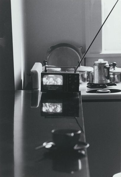 Larry Fink made this photograph, American Legion, Bangor, Pennsylvania, sometime in the late twentieth century. The composition is classic Fink: a slice of everyday life, rendered with an unflinching eye for detail and a palpable sense of atmosphere. The textures in this image are amazing, right? The smooth surfaces of the appliances are juxtaposed against the gritty, textured wall. Look closely at the fan: its delicate metal frame casting a shadow that seems almost as solid as the object itself. The eye is drawn to the way the light catches on the edges of the metal blades, creating a sense of depth and volume. The clock with the Miller High Life sign adds a touch of Americana. It reminds me a little bit of Walker Evans, or even Robert Frank, in the way that it captures the beauty and the grit of the American experience. Like their work, this photograph leaves you with more questions than answers, inviting you to fill in the blanks and to bring your own experiences to bear on what you see.