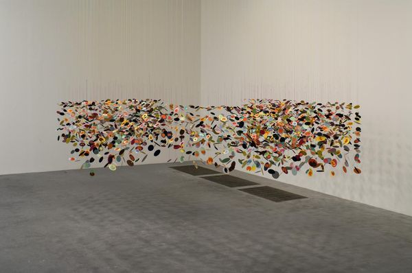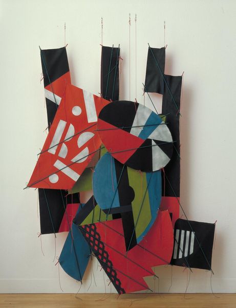 Editor: This artwork, titled "Untitled" by Rodrigo Franzao and created in 2014, is a fascinating mix of materials including collage and textile. It feels both vibrant and fragmented to me. How do you interpret this work? Curator: I see layers of visual language woven together. The geometric forms, bursting with color, evoke a sense of Pattern and Decoration, yet the fragmented nature leans towards Abstract Expressionism. Look closely—do you notice how the artist seems to be building up cultural memory with these recognizable shapes? The use of textile in collage hints at histories of craft and domesticity elevated into a high art form. Editor: That's interesting! So, the choice of materials also carries meaning, going beyond just aesthetic considerations? Curator: Absolutely. The "stuff" matters. The inherent warmth of the textiles, combined with the collage technique, suggests the piecing together of memories, perhaps even a disruption or a rewriting of inherited narratives. It's as though Franzao is creating a visual tapestry of collective experiences. What stories do you think it could be trying to tell? Editor: I guess the abstraction allows for a lot of different possibilities, doesn't it? The geometric shapes…are they symbolic, or simply part of the overall design? Curator: Consider that geometry itself often carries symbolic weight. Think about mandalas or sacred geometry. Franzao seems to play with that history, but then undermines any rigid structure through the collage elements. It's this tension, this dialogue between order and chaos, that makes the piece so compelling. Editor: It sounds like understanding the artist's background and intention could give us a more informed understanding of the cultural memories being communicated by the visual symbolism. Curator: Indeed! By understanding that connection we may view artwork in ways we had not originally intended. Thank you for sharing that observation! Editor: Thank you for pointing out so many historical connections within this modern artwork.