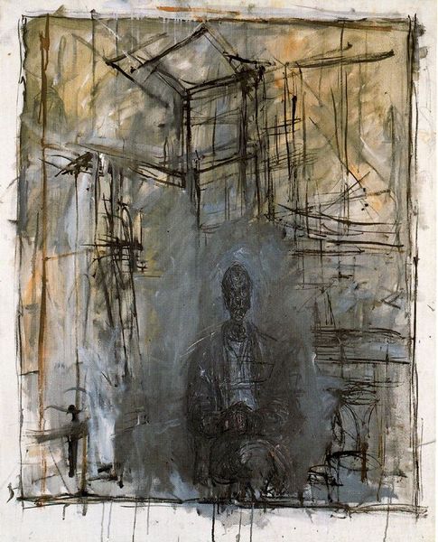 Curator: Before us hangs "Diego," a striking portrait by Alberto Giacometti. Editor: There's such a haunting quality to it, wouldn't you agree? The face seems to emerge from shadows, almost spectral. Curator: Indeed. Giacometti often explored existential themes, and this portrait is exemplary of his style. Think about the social and psychological aftershocks of the war on portraiture. Editor: I'm struck by the halo of light. Is it meant to signify something beyond the earthly plane? Perhaps a symbol of Diego's inner self? Curator: It's interesting that you bring that up. Giacometti's use of light and shadow served a purpose, it reflected a desire to capture the essence of human existence within art. Editor: It feels very personal and raw, and the scale, it's so intimate! Almost as if he wants us to truly see his brother. Curator: Exactly, Giacometti challenges the viewer to confront the complexities and depths within human identity itself. Editor: It all makes sense now, I'm seeing this portrait in a completely different light. Curator: Yes, understanding the historical backdrop undoubtedly enriches our reading.
