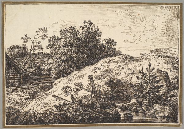 Editor: Here we have "La femme et l'enfant au bord de l'eau", or "Woman and Child at the Water's Edge," made sometime between 1809 and 1886 by Louis Hector Allemand. It's an etching, a type of printmaking. There's a real stillness to the image, a sense of quiet labor, maybe just a stolen moment of rest for the woman and child depicted. What do you see in it? Curator: Immediately, the process grabs my attention. Look at the etched lines—they delineate not just the figures and landscape but also Allemand's labor, his meticulous act of creation. We need to consider the societal context, the accessibility of printmaking during this period. Was this artwork intended for a broader audience compared to, say, a unique painting? How does its existence as a print alter our perception of its value? Editor: So, thinking about it being a print… does that make it more about distribution, about the potential for this image of "romantic" rural life to be disseminated? Curator: Precisely! It pushes us to question traditional art hierarchies. Was Allemand aiming for high art or something more functional, decorative perhaps? Etchings allowed for reproduction, bringing art into homes and lives that might not otherwise have access to original paintings or sculptures. What implications does that have for ideas about taste, class, and access to beauty in 19th-century France? How did it effect and reflect its culture of consumption? Editor: I never thought about the class aspect so explicitly. The medium informs its reception! Curator: Exactly. By focusing on the materials, the means of production, and distribution, we can begin to unravel the social and economic narratives embedded within this seemingly tranquil scene. Editor: This makes me appreciate the print much more! Thank you.