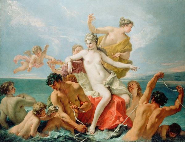 Alexandre Cabanel painted this Birth of Venus using oil on canvas. Venus, born from the sea foam, reclines sensuously on the waves, observed by playful putti overhead. This depiction of Venus has roots in ancient mythology, tracing back to classical antiquity. The motif of a goddess emerging from the sea is laden with symbolism, representing not only beauty and love but also creation and renewal. Consider Botticelli's Renaissance interpretation, where Venus stands on a shell. Here, Cabanel's Venus evokes a more intimate, almost dreamlike quality. The putti, or cherubs, are direct descendants of Cupid, Eros, and Amor from classical art. These figures, often depicted as winged infants, symbolize desire and affection. These symbols are cyclical; reappearing through history, their meanings evolve, yet their power remains. This reflects the human psyche's enduring need to express ideas of love, desire, and beauty.
