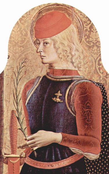 Carlo Crivelli rendered this Saint Ursula in tempera on panel, a common practice in the late medieval period. Tempera demanded meticulous labor; pigments ground by hand and mixed with egg yolk, applied in thin, precise layers. This demanded incredible skill. Observe the smooth, almost ethereal quality of Ursula's skin and clothing, achieved through painstaking brushwork. The punchwork, a technique of using a metal tool to create a repeating pattern, on Saint Ursula's halo and dress adds texture, and reflects the artisan's careful engagement with their materials. This was a deliberate act, with a deep understanding of material and process. These techniques reflect not only Crivelli's artistry, but also a wider workshop production system; an assembly line of labor involved in the creation of these devotional objects. The preciousness of materials, the labor involved, and the spiritual weight of the subject matter all contribute to its meaning. Examining Crivelli's materials and modes of production offers us a richer understanding of this piece.