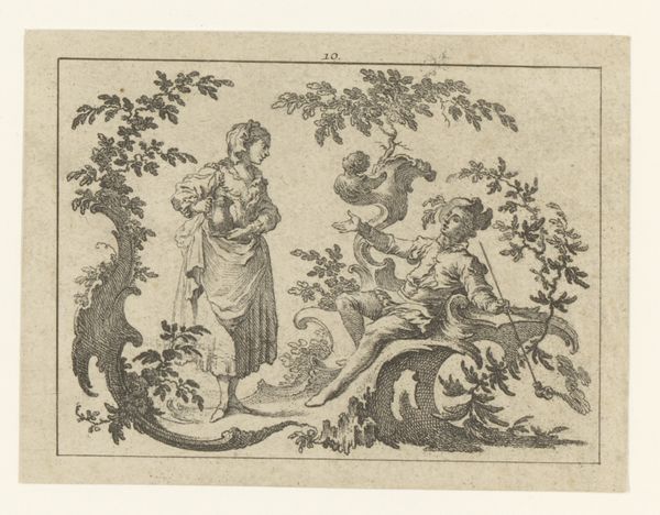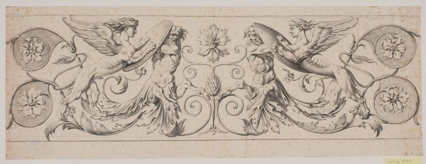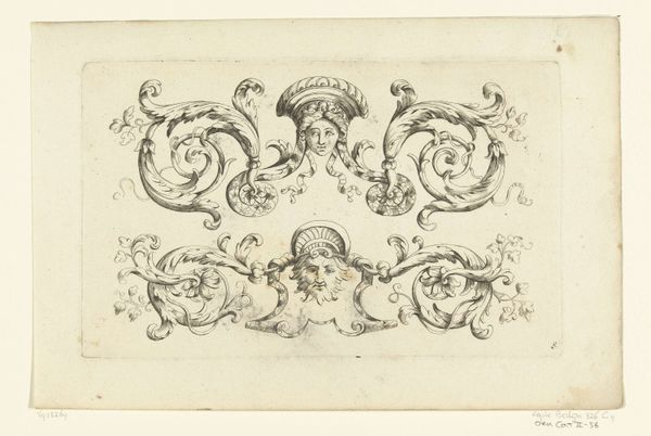 Paul Androuet Ducerceau created this ornamental design with two leaf tendrils and cupids sometime between 1643 and 1710, using etching. During Ducerceau’s lifetime, France was under the rule of Louis XIV, a period characterized by the flourishing of the Baroque style, and rigid social hierarchies. Ornament prints such as this one reflected the era's emphasis on decoration and the importance of classical motifs. The cherubic figures known as amoretti, or cupids, became symbols of idealized love, and were popularized during the Renaissance. The cupids here strike different poses and expressions, inviting an emotional engagement, and perhaps offering a playful narrative. The image embodies the era’s focus on symmetry and ornate detail, as well as its tendency to celebrate idealized forms of youth and beauty. Through his prints, Ducerceau catered to an aristocratic clientele with an appreciation for elaborate design. The print offers us a glimpse into the aesthetics and cultural values of 17th-century France.