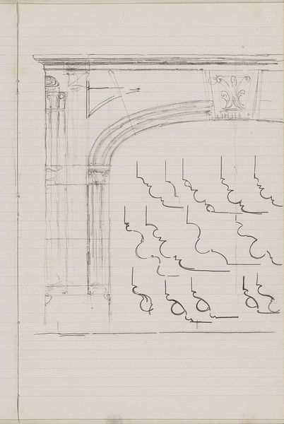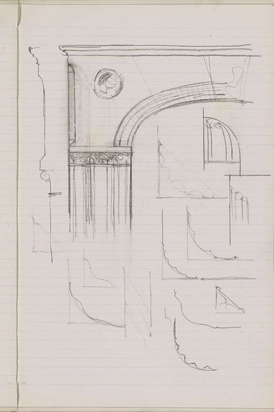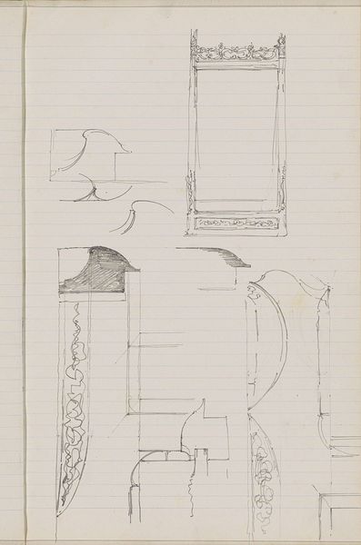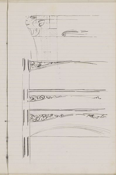 This drawing, Architecturale details, was made by Gerrit Willem Dijsselhof, we don't know exactly when, but it's a really fascinating look into how an artist thinks through a problem. Dijsselhof uses a very limited palette, just ink on paper, which gives the drawing a stark, almost architectural feel, even though it's not really architecture. Look at the way the lines vary, sometimes thick and confident, sometimes thin and hesitant. It’s like Dijsselhof is feeling his way through the design, exploring different possibilities. The paper itself is lined, like a notebook page, which adds to the sense of this being a work in progress, a sketch rather than a finished piece. The little flourishes of detail, like the curves and circles, add a touch of playfulness to the otherwise rigorous geometry. It reminds me a little of the early sketches of Hilma af Klint, though much more grounded in the everyday. It's a reminder that even the most functional-seeming art can be full of imagination and wonder.