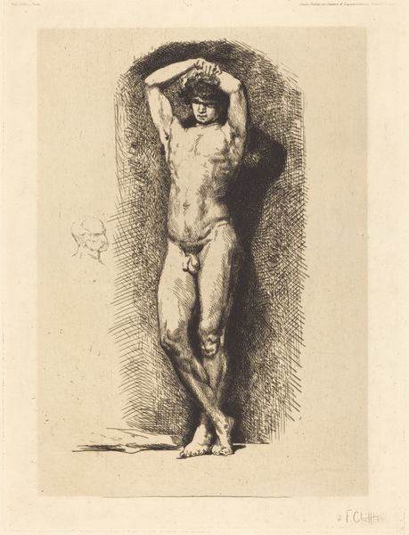 Louis Anquetin created this print titled, *Georges Picquart en de draak* in 1899. It offers us a glimpse into the tumultuous Dreyfus Affair which divided France at the end of the 19th century. Here, Anquetin depicts Colonel Georges Picquart as a classical hero, nude and garlanded with a wreath, standing triumphantly over a defeated dragon. Picquart, head of French military intelligence, exposed the antisemitic conspiracy that wrongly convicted Alfred Dreyfus of treason. In doing so, Picquart risked his career and faced imprisonment, yet he courageously pursued justice. The image resonates with themes of truth and power, illustrating Picquart's personal and professional struggle against the venomous antisemitism represented by the dragon. Anquetin, like many artists and intellectuals of his time, was deeply affected by the Dreyfus Affair. The print serves as a powerful statement, immortalizing Picquart's bravery and underscoring the importance of standing against injustice.