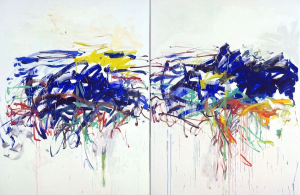 Joan Mitchell made this painting, with oil on canvas, at an unknown date. The way she attacks the canvas, the pure physicality of those strokes, it’s all about the doing, the making, the *process*. Look at how the paint sits on the surface – thick in some places, almost transparent in others. It's like she’s wrestling with the material, pushing it around to see what it can do. I'm drawn to the strokes of pure yellow, orange and lavender that seem to drip and dance down the canvas, each one a record of her hand, her energy, her very presence. They're not just colors; they're feelings, emotions, raw and unfiltered. Mitchell reminds me of de Kooning, that same sense of urgency and freedom. But there's something else too, a kind of tenderness, a vulnerability that peeks through the bravado. In the end, it is all about questioning: allowing for doubt, open-endedness, and the possibility of multiple meanings.