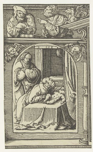 This anonymous print depicts a biblical scene, 'Afgezant van Abner knielt voor David', and was made using woodcut. The image presents us with some interesting questions about the social and political role of religious imagery in the Netherlands. The print translates a story from the Bible into a visual language that would have resonated with a 16th or 17th century audience in the Netherlands. Note the clothing, which is not biblical but of the time the artwork was made. The architecture is similarly of the time. We might ask, what was the public role of this kind of art at the time? Prints such as this were widely circulated and relatively inexpensive. In whose interest was it to produce such images, and what was their purpose? What are the politics of representing biblical stories in this way? These are the kinds of questions that an art historian might ask. To understand the social context of this print, we would need to research the history of printmaking in the Netherlands, as well as the religious and political beliefs of the time.
