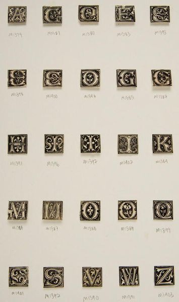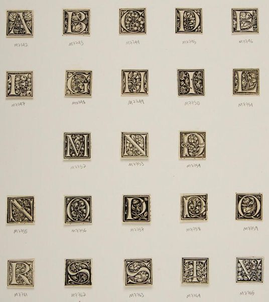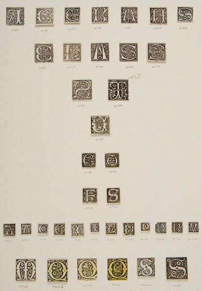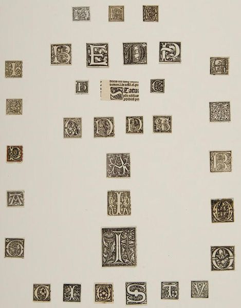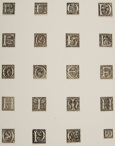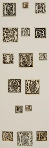 Editor: Here we have Letter B, created by an anonymous artist. It seems to be a collection of individual letter designs. How would you interpret the cultural significance of these decorative letters? Curator: These ornamented letters are remnants of a time when literacy and book production were closely tied to power. Illuminated manuscripts weren't just about conveying text; they were about displaying wealth, status, and, often, religious authority. How might the artist be commenting on that? Editor: Perhaps they are highlighting the beauty and craftsmanship associated with these symbols of power, or maybe critiquing the exclusivity of knowledge? Curator: Exactly! The deliberate arrangement and careful detail could be seen as both a celebration and a reflection on the historical role of letters and language in shaping society. It's a potent reminder of how access to information and the means of its production have always been political.