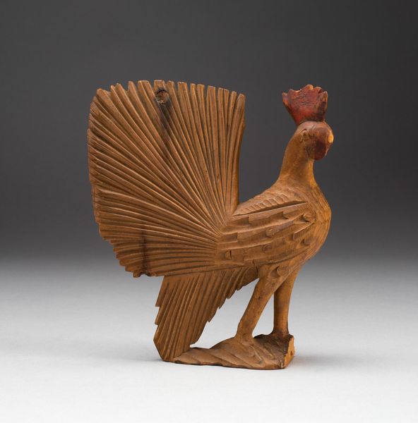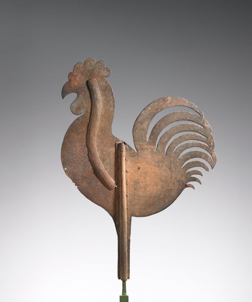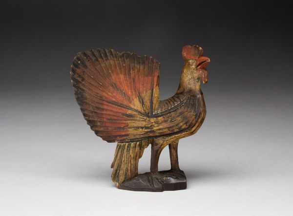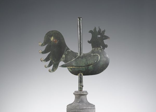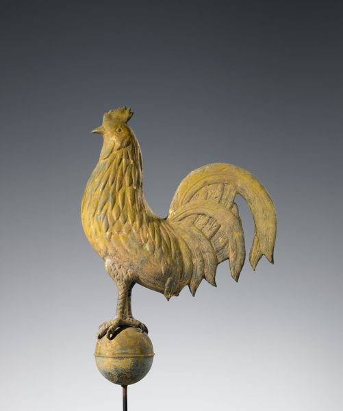 Curator: Here we have a bronze sculpture called "Rooster," thought to have been crafted sometime between 1800 and 1940, and currently residing at the Metropolitan Museum of Art. What's your take on our feathery friend? Editor: Oh, he's got attitude! Look at the way he’s perched – all puffed up, ready to announce the day. You can practically hear the cock-a-doodle-doo, even frozen in bronze. Curator: Indeed! There’s an incredible vitality Giambologna (after whom it is modeled) manages to capture. It's really remarkable. You get the feeling of realism in the form. Editor: Realism, yes, but consider the material. Bronze wasn’t just chosen for its aesthetic appeal. It was a deliberate decision rooted in power, prestige, a sort of permanence the artists and patrons sought, echoing back to classical ideals. Think of the mining, the smelting, the labor, and the artistry involved to cast the material—craft as wealth. Curator: Absolutely, the choice of bronze is loaded with significance. But, look how the light plays on its surface – dark shadows highlighting the texture of each feather, almost like an oil painting on metal. Editor: Speaking of light, the texture is key. Each stroke on the rooster alludes to labor division where a series of skilled sculptors translated Giambologna original ideas into the casting, chasing, and finishing, underscoring the value placed on hand craftsmanship during industrialization and increased alienation of workers and designers from production. Curator: But it also brings life, don't you think? And think of the symbolism! The rooster has represented courage, vigilance, and even resurrection throughout history. It would’ve resonated profoundly with viewers then. I wonder though, did it evoke something different in your perspective? Editor: To me, beyond the obvious symbolism, this rooster is an artifact of material culture, of complex system of labor division; it encapsulates artistry and craftsmanship under societal systems. What I find impressive is the translation and mastery in bringing art to such a large crowd of viewers in various medium! Curator: A thought-provoking point indeed! Editor: Right. Thinking of the art as just materials—and considering art and wealth—really changed how I saw it.