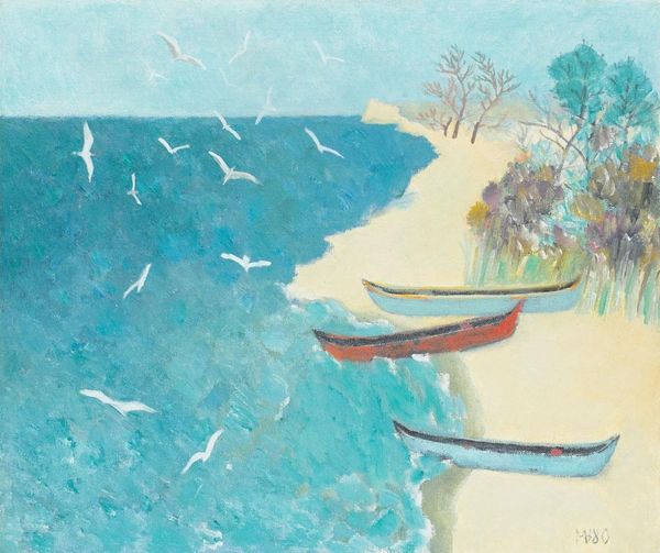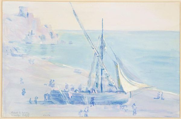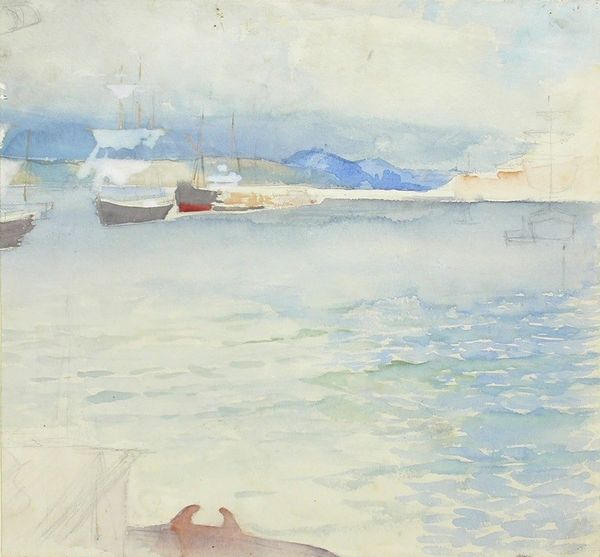 Editor: Denman Waldo Ross's watercolor, "Promontory, Surinam," presents a vibrant coastal scene. The materiality of the watercolor gives it a light, airy quality. What can you tell me about it? Curator: I see a clear engagement with the tools and materials of painting itself. Ross's application of watercolor brings the social context of leisure and artistic training into focus. How might his access to materials and the time to create such a work reflect privilege and colonialism in Surinam? Editor: That's a perspective I hadn't considered. It makes me think about who had the resources for artistic expression during that time. Thank you for pointing that out. Curator: Examining art through its production and consumption opens up many possibilities for interpretation.