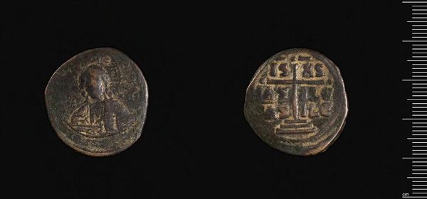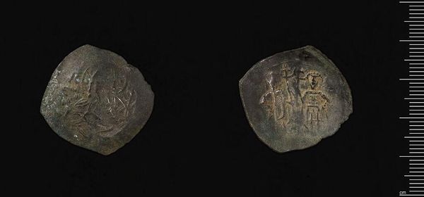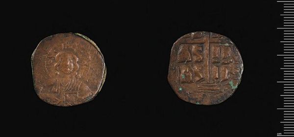 Curator: Immediately, I see a kind of sacredness in this tiny artifact. It carries the weight of time and belief. Editor: Indeed. This is a coin of Manuel I, now residing at the Harvard Art Museums. The material speaks to the reach and impact of his reign. Curator: Absolutely. Coins were powerful tools of propaganda. Consider the imagery here, carefully chosen to convey authority and legitimacy. Editor: I'm particularly drawn to the iconography. The symbols, though worn, hint at a complex system of meaning that resonated deeply with the people of that era. Curator: And we must remember the socio-economic context. Coins like this were not just currency; they were miniature works of art circulating amongst the populace. Editor: Looking closely, the wear and tear tells a silent story of countless transactions, journeys, and exchanges, connecting individuals across vast distances. Curator: Yes, its journey reminds us of the enduring power of symbols to transcend time and place, offering a glimpse into a distant world. Editor: Precisely, a tiny vessel carrying a culture's hopes, fears, and beliefs across centuries.