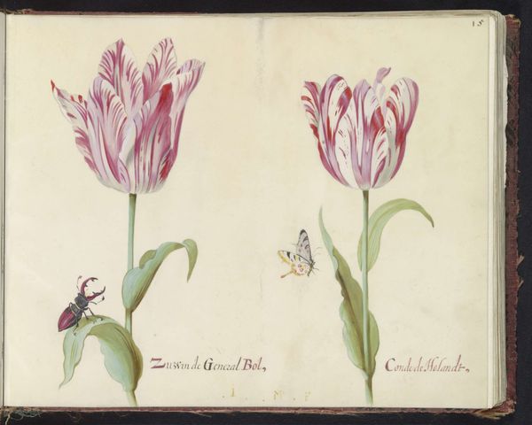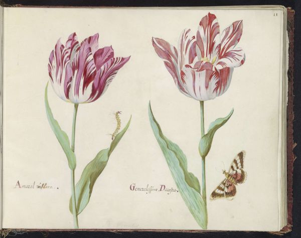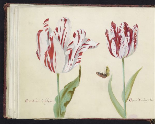 Jacob Marrel created "Two Tulips with Butterfly" using watercolor and gouache, painted on parchment, sometime during the 17th century. During the Dutch Golden Age, tulips weren't just flowers, they were a feverish obsession. This work captures the height of "Tulip Mania," when these blooms were traded at prices exceeding the cost of houses. It wasn't just about beauty; it was about wealth, status, and the intoxicating allure of the exotic, tulips having been recently introduced to Europe from Turkey. Marrel's painting reflects the social and economic aspirations tied to these flowers. Note how he meticulously portrays each petal, almost like a portrait of a prized possession. There's a tension here – the delicate beauty of nature intertwined with the aggressive pursuit of wealth and the ephemeral nature of value. Consider the butterfly, a symbol of transformation and fragility, perhaps hinting at the fleeting nature of this speculative bubble. It invites us to reflect on the stories we tell ourselves about beauty, desire, and the relentless pursuit of more.