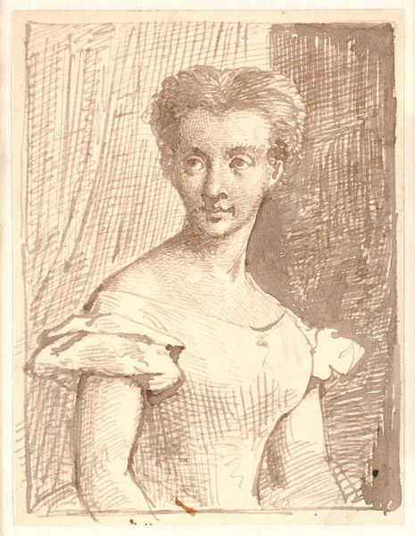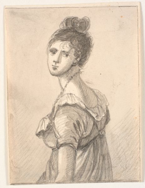 Editor: This is Charles Howard Hodges' "Portretstudie van een onbekende vrouw," or "Portrait Study of an Unknown Woman," created between 1774 and 1837 using pencil on paper. The delicate lines create a somewhat melancholic feel, don't you think? What do you see in this piece? Curator: I see echoes of societal expectations in her averted gaze and the rather restrictive bonnet. Consider the period - the late 18th and early 19th centuries. What symbols of femininity were prevalent then, and how does Hodges both uphold and subtly question them? Does the unknown sitter internalize those symbolic constructs? Editor: That's a fascinating way to approach it! I hadn’t considered the bonnet as restrictive, more as...demure? So you think her downcast gaze challenges those conventions? Curator: Perhaps "challenges" is too strong a word. More like... reveals the psychological weight of those expectations. Look at the details - the slightly unfocused eyes, the subtle tension in her jaw. Hodges isn’t just capturing a likeness; he’s hinting at an inner world shaped by the societal scripts she’s been given. The Romantic era loved the internal lives of the everyman. Editor: That's a great point. It makes me wonder who *she* was. What stories and memories did she hold? Did Hodges intend to imbue the sitter with such emotion? Curator: Every image is a repository of cultural memory, consciously or unconsciously. We, as viewers, project our own meanings and experiences onto it, too, creating a dialogue across time. How might a contemporary audience see this differently? Editor: This has made me realize there's so much more to a portrait than just a face. Thanks, that's a whole new perspective for me. Curator: Indeed. It's about reading the symbols, unraveling the cultural codes, and hearing the echoes of the past resonating within the image and inside ourselves.