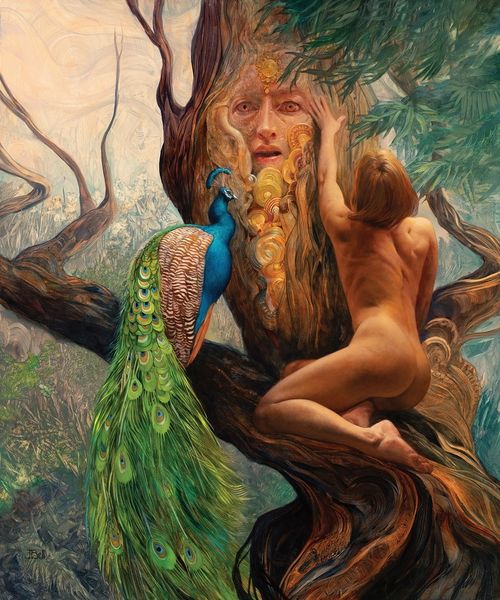 Julie Bell created this painting, A Cloud of Black Leopards, using oil on board, presenting us with a fantastical scene that hints at broader cultural themes. The muscular figure is reminiscent of classical sculpture, but here, the figure is a woman, boldly taking center stage in a way that challenges traditional gender roles often seen in art history. The leopards, powerful and sleek, symbolize strength, and independence. The backdrop, with its waterfall and mystical eye in the lower right corner, creates an otherworldly setting, as Bell combines elements of fantasy with a celebration of female empowerment. To truly understand this painting, one might explore the rise of feminist art movements and how they intersect with fantasy and science fiction genres. Bell's work fits into a larger conversation about challenging social norms and envisioning new possibilities through art.