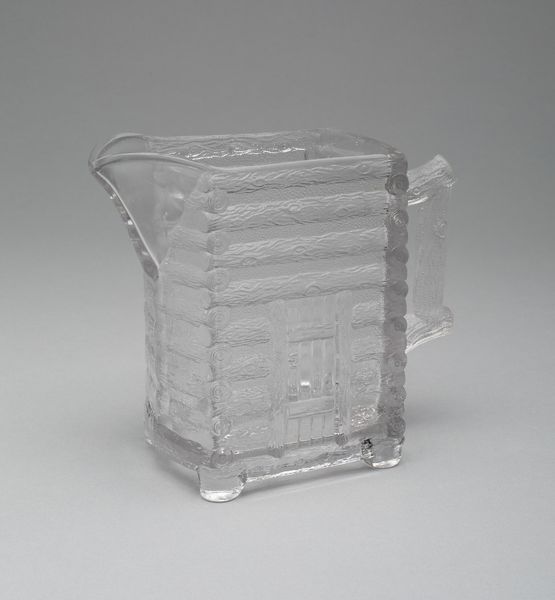 Curator: Here we have a rather unusual object: a glass block functioning as a still bank. It comes from the Pittsburgh Corning Glass Block Corporation, dating back to the 20th century. Editor: First impression? Kind of sterile, almost like something from a sci-fi hospital. But there’s a strange beauty to it. I find its rigid structure oddly appealing. It reminds me of the modernist designs for communal living spaces, or government buildings—there is almost an utopian ideal implied. Curator: It certainly reflects a particular moment in design history, where industrial materials like glass were embraced for their functionality and aesthetic potential. This piece served a dual purpose – showcasing the company’s product while encouraging thriftiness. These objects often were handed out to employees to encourage investing. Editor: True, there's also something melancholic about it. Glass is so transparent, yet also fragile and unforgiving. Imagine all the tiny coins rattling inside over time—all the wishes trapped within this see-through box! It looks like the inscription and designs are embossed onto the face of it? Is that right? Curator: Indeed, the text and branding are molded into the glass itself, creating a subtle yet permanent form of advertisement. Its durability—obviously, the block is built to last—meant that Pittsburgh Corning would have had its name in people's peripheral vision long after they installed any blocks for construction, for example. It became more of a symbolic keepsake over time, once glass block fell out of style, or were viewed as old-fashioned. Editor: Absolutely. Think about how many families might have held this very object? And what it stood for—security, prosperity, the American dream manifested in a block of solid, clear glass. I bet there's even a bit of nostalgic longing bound up in it now. It makes me wish I could hold it to find the answer. Curator: It definitely provides an intriguing look into the intersection of industry, design, and consumer culture, which makes this more than just a still bank; it becomes a historical artifact with multiple layers of meaning. Editor: You know, seeing this piece has me reconsidering everyday objects. A simple glass block becomes a vessel of memories. I love how art challenges us to see beauty in the mundane.