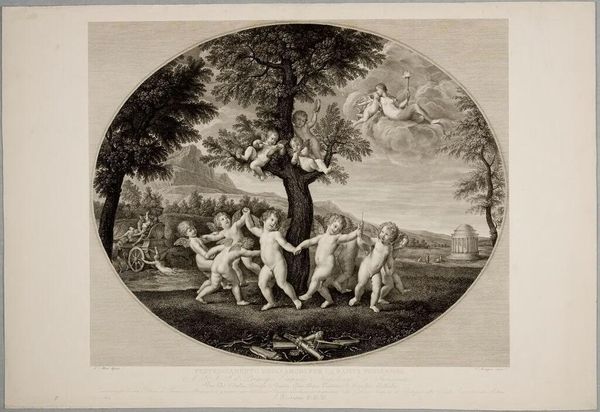 Editor: This is Robert Cooper’s "Bacchanalian Dance," and while the date's unknown, he was active around the turn of the 18th century. It's a print, with lots of bodies intertwined. What stands out to you? Curator: I notice the clear emphasis on production. This print served as a medium for circulating classical themes to a wider audience. Consider the labour involved in engraving and the societal desire for these images. Editor: So, it's less about the mythological scene itself, and more about how Cooper is replicating and distributing it? Curator: Precisely. Think about the cost of the paper, the engraver's time, and the market for such images. These factors dictated its creation, and who could access it. Editor: I never considered art consumption from that point of view. It adds a whole new layer to the image. Curator: Indeed. By examining the means of production, we see beyond the surface narrative.