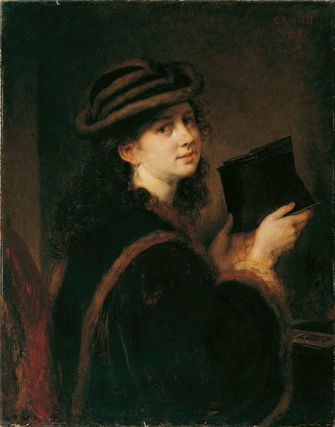 Editor: Here we have Rembrandt van Rijn's "Titus, the Artist’s Son," painted around 1657, in oil. I'm struck by how Rembrandt’s impasto seems to almost sculpt Titus’s face out of light. How do you interpret this piece? Curator: Let’s think about the context. This painting exists not in a vacuum but emerges from specific material conditions. Rembrandt's access to pigments, his studio assistants who ground them, the canvases woven from linen, and even the social standing that allowed for portraiture—all are vital components of its creation. It represents artistic labor and commodification in 17th-century Netherlands. Editor: That's an interesting way to put it. I guess I was mostly seeing it as a tender portrait of a father and son. Curator: Well, consider also that this tender portrait is crafted through very deliberate applications of material. Notice the textures; think about the relative cost of the pigments that created them, how those pigments were acquired. Consider also that the material conditions of painting such as this dictate how people were able to perceive images at this time. Are you still looking at the "father and son" in the same way? Editor: Not exactly, no. I guess it highlights the economic and social systems in play. All those materials and labor contributing to the creation, as opposed to just pure artistic genius. It reframes the picture somehow! Curator: Exactly. Art is a product of human hands and the economic structures that enable their work. It is deeply rooted in materiality. It is what we can consider when seeing works of art such as these, today. Editor: I’ll certainly think more about the material origins behind the art that I love now.