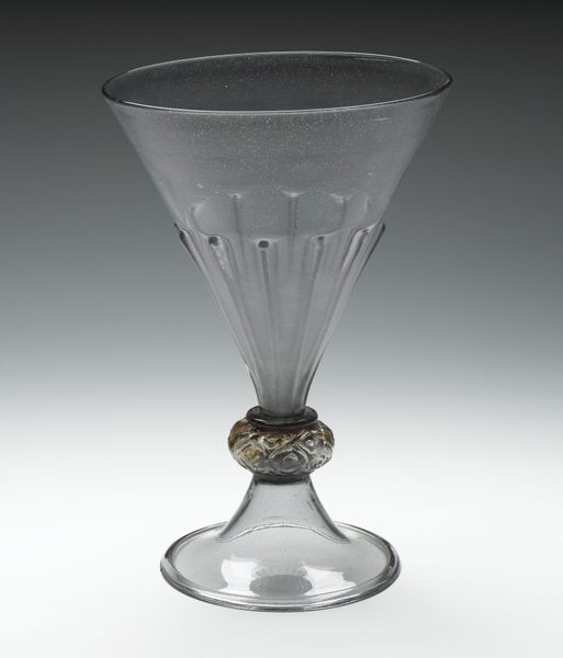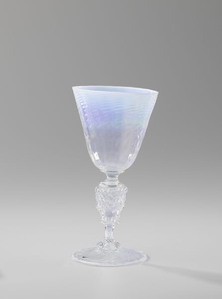 This "Vase with knopped stem" was made by Harry Powell, a British designer associated with James Powell & Sons glassworks. Harry took over the Whitefriars Glass company from his father in 1875. The late 19th and early 20th centuries saw the rise of the Arts and Crafts movement, which championed handcrafted goods over mass production. Powell's designs often reflected this ethos, emphasizing the beauty of materials and the skill of the artisan. The vase's delicate form and subtle color gradations evoke a sense of ethereal beauty. The knopped stem, with its bulbous shape, adds a touch of whimsy and visual interest. Glassblowing allowed for experimentation with form, color, and texture, resulting in objects that were both functional and aesthetically pleasing. How does this vase—with its emphasis on craftsmanship and delicate beauty—speak to our contemporary concerns about sustainability, labor, and the role of art in everyday life?